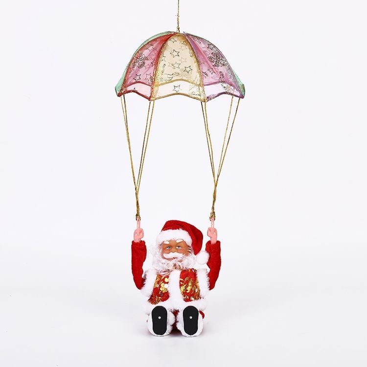 【Perfect Size】Parachute Santa Length: about 15.7x7.4 inches for Parachute electric Santa, and the gold bead chain is about 39 inches long, Parachute electric Santa keeps playing with music; Lovely and varied styles can meet the different needs of your Christmas, providing you with a happy and memorable Christmas