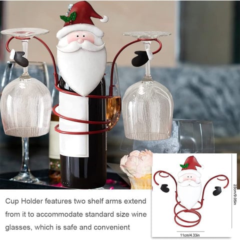 • πŸŽ„A finely detailed, cheerful face sits atop a spiral bodyΒ that fits around a standard wine bottle while two arms hold your wine glasses.Β
