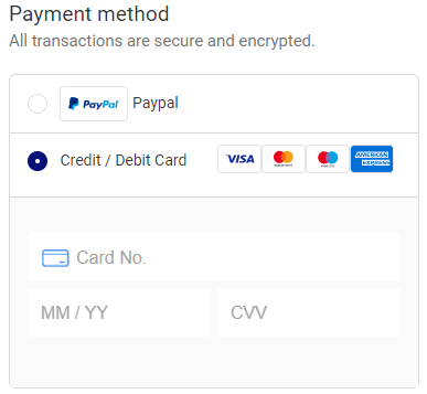 If you want to checkout with a Debit or Credit Card, just enter your * Card No* Expiration Date, and * CVV.